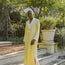 The "Kolkata Kaftan" from Franki & Remi is made from light weight yellow cotton and features white piping along with white tassels.