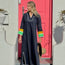 Bold and timeless, the Tangier Kaftan is crafted from crisp navy cotton and finished with white piping that frames the silhouette with understated polish. The sleeves are the star: boldly banded in rich contrast—sunset orange, mint green, and clean white—for a look that nods to the vibrant energy of Moroccan markets. A relaxed cut and ankle-grazing hem make it perfect for both summer strolls and elegant lounging. Finished with a gently curved neckline and side slits for ease of movement, this is a wardrobe statement piece that speaks of faraway places and sunlit days.
