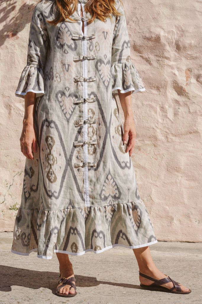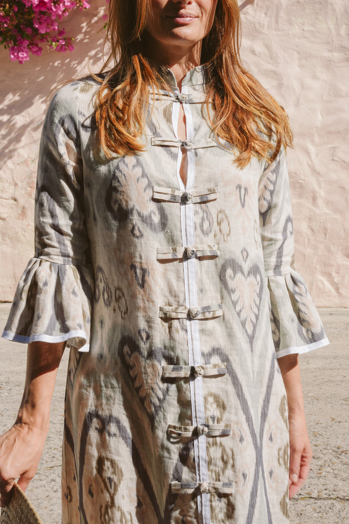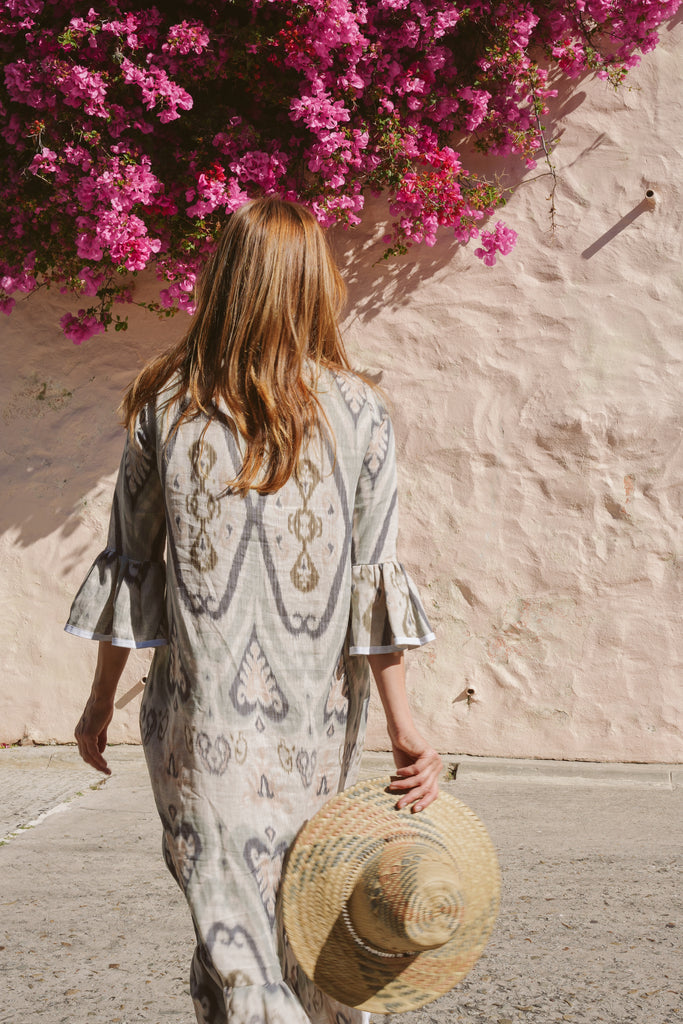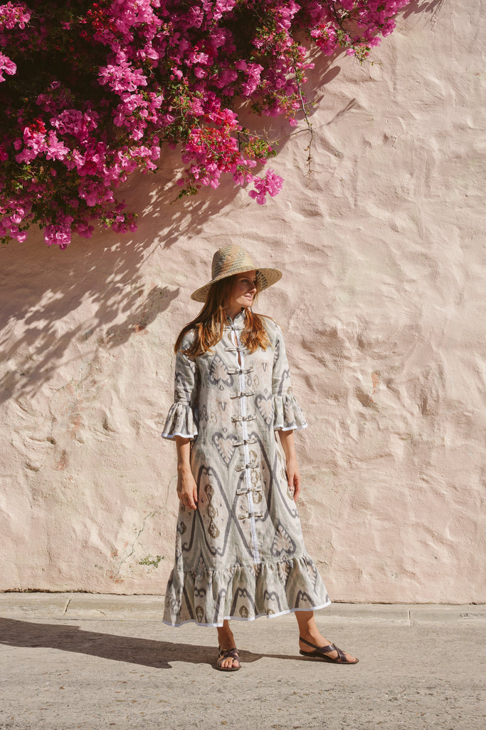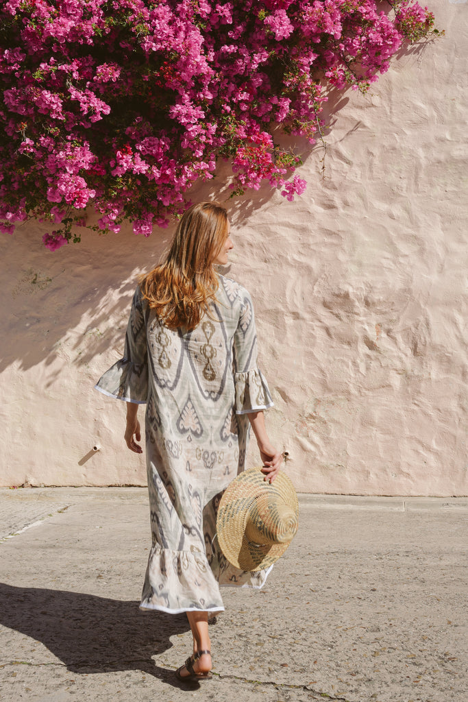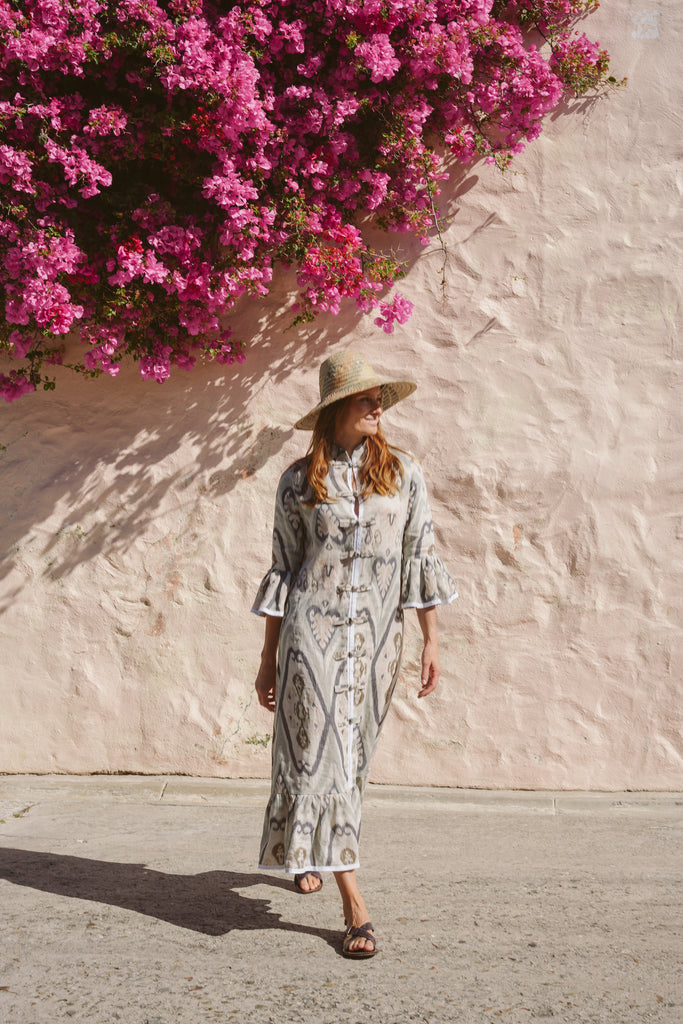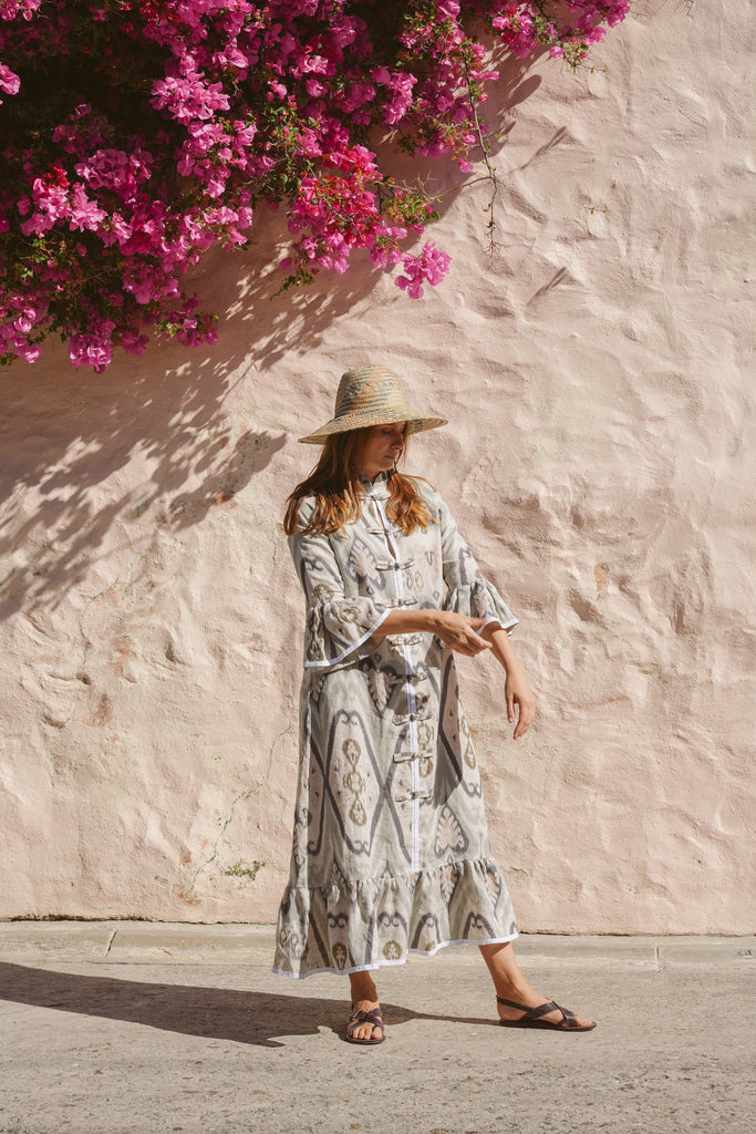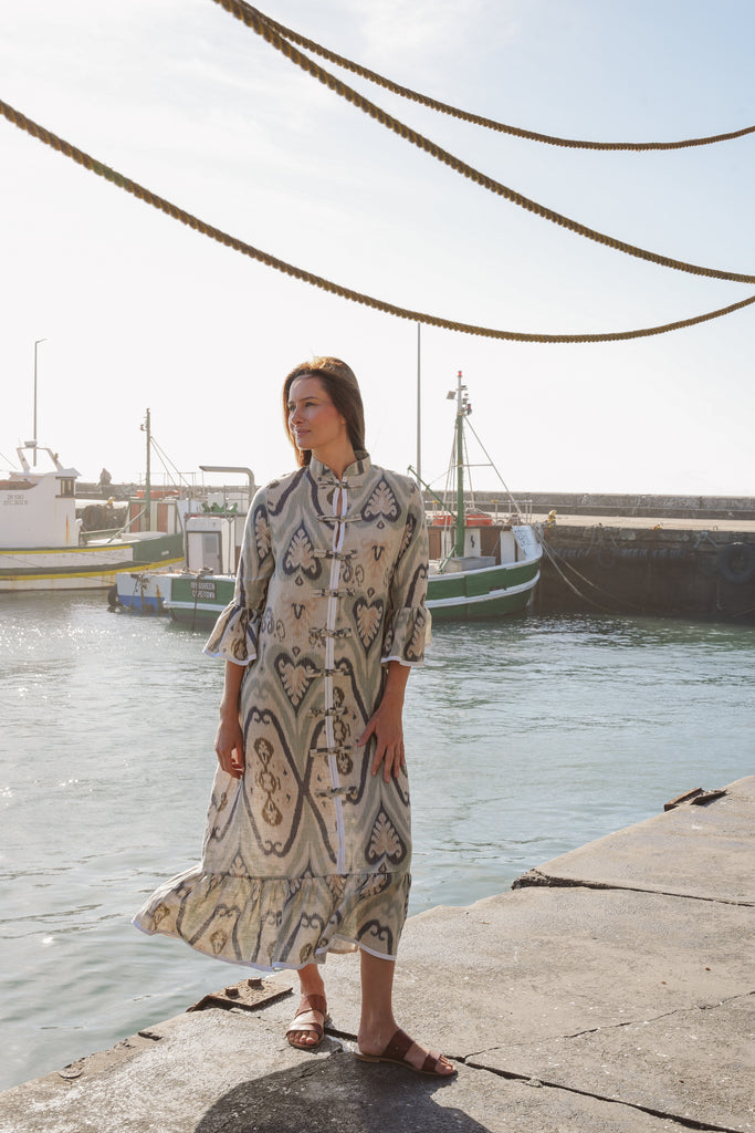The Frill Antibes Kaftan from Franki & Remi is a timeless statement piece, crafted from heavier weight cotton with elegant button details and crisp white piping an a stunning frill addition. Its bold pattern adds a sophisticated yet relaxed touch, making it perfect for effortless styling.